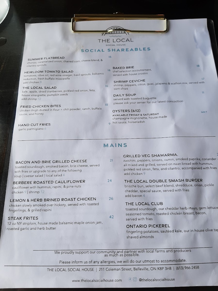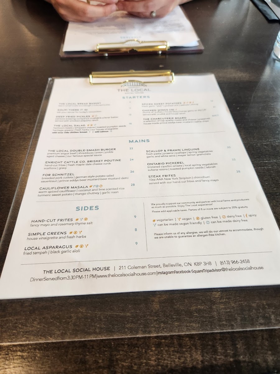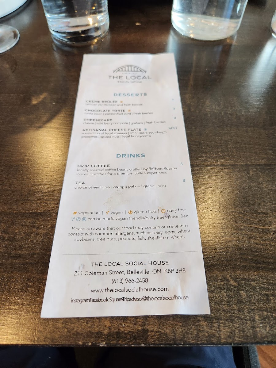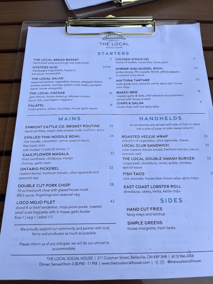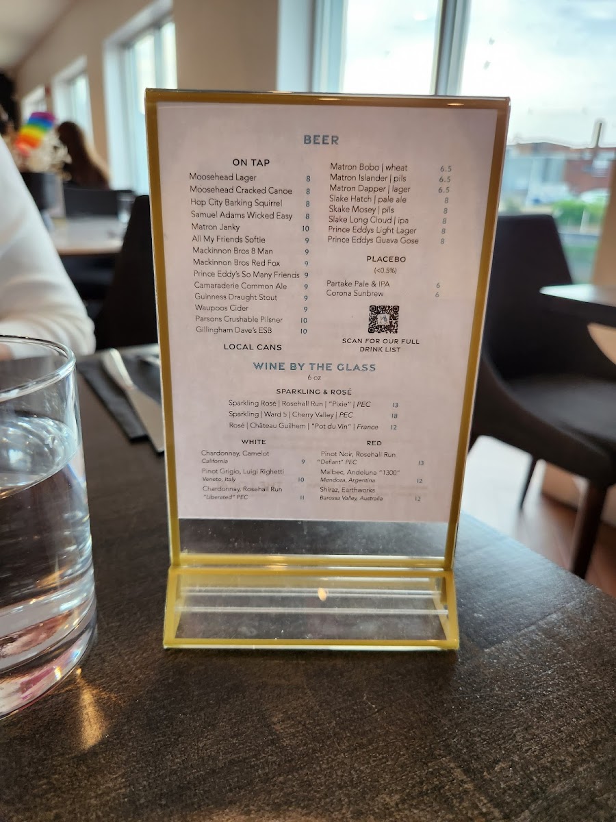 The menu highlights include dishes like oysters and chickpea fritters to start, hearty options such as the brisket poutine or Ontario pickerel as mains, and comforting desserts like the vanilla creme brulee or chocolate torte. These items pair well with approachable drinks, from thoughtfully crafted cocktails to local brews, fitting seamlessly with the inviting atmosphere of the restaurant.